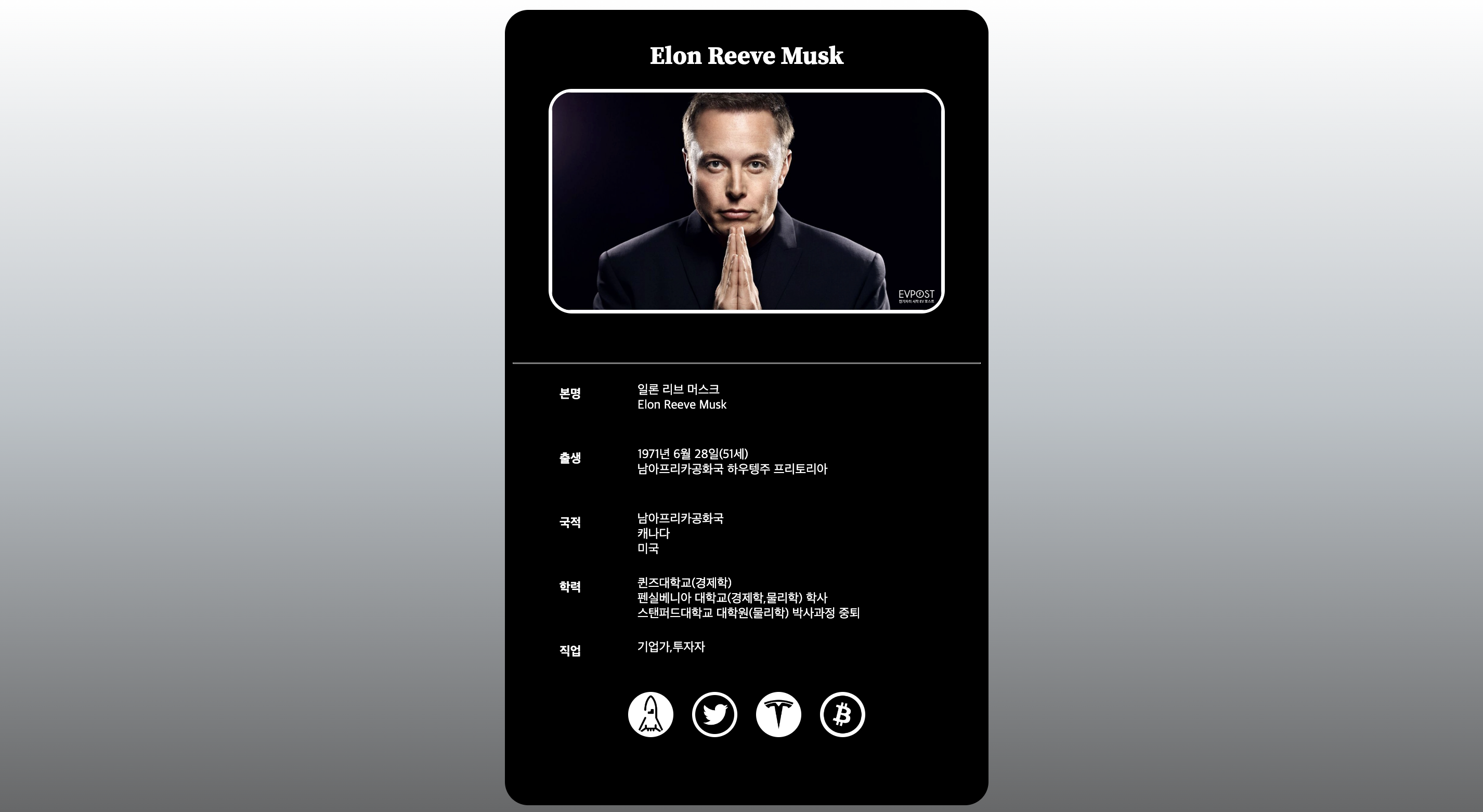 <p>일론 리브 머스크 <br>Elon Reeve Musk</p>