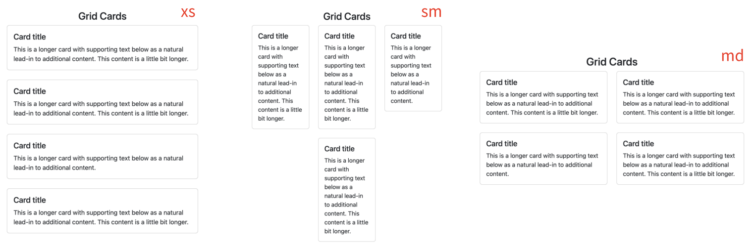 ⎣ row-cols-1일 경우 한 줄에 카드 1개를 표시하겠다, row-cols-sm-3일 경우 sm사이즈일 때 한 줄에 카드를 3개를 표시하겠다
