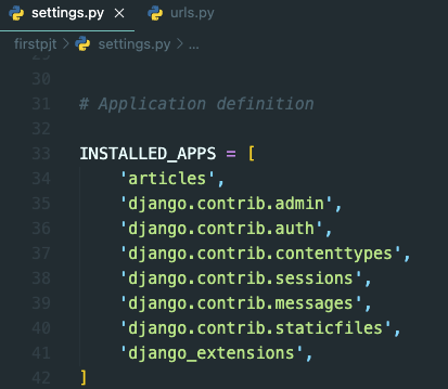 # INSTALLED_APPS 리스트에 django_extensions 추가