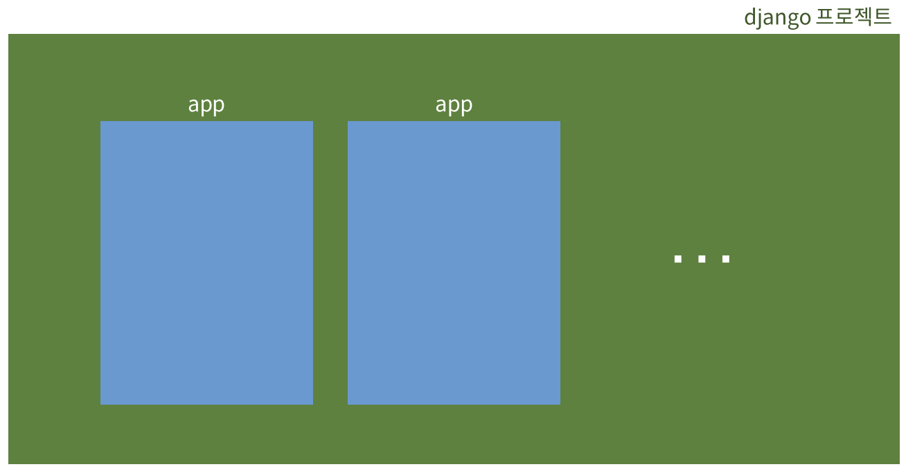 - 각자 특정한 기능을 담당하며 다른 앱들과 함께 하나의 프로젝트를 구성