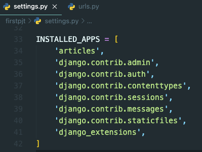 # firstpjt > settings.py >> 'Application defintion'주석에 INSTALLED_APPS 코드가 이미 존재하는데
