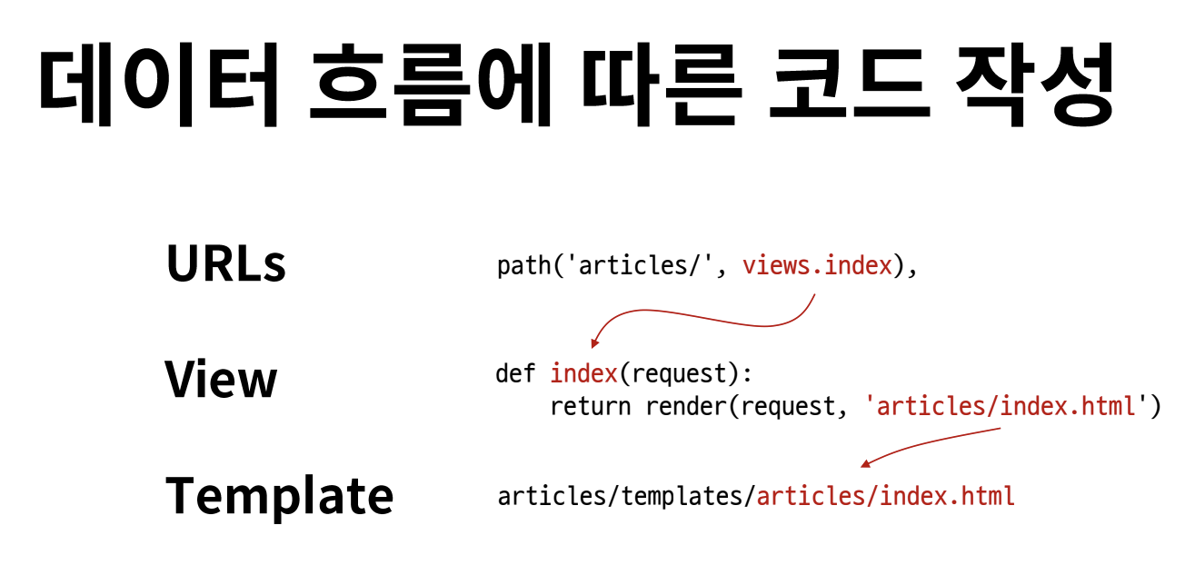 - articles 폴더명, settings.py의 INSTALLED_APPS에 추가된 폴더명, url.py의 from 폴더명 부분과 무관함