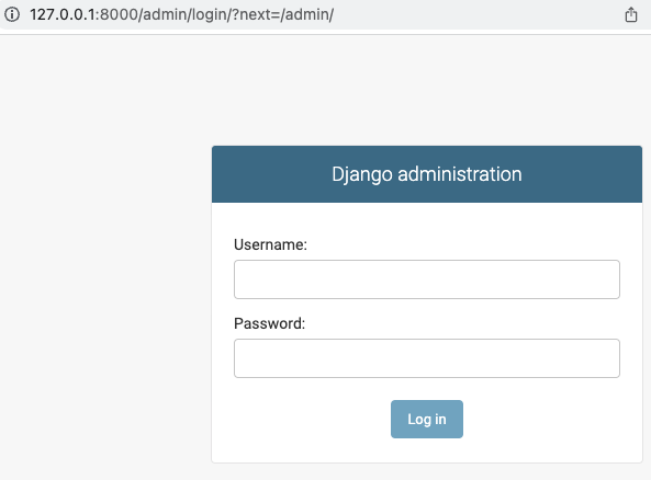 - python manage.py runserver → 주소 복사 후 http://127.0.0.1:8000/admin/ → 위와 같은 관리자 페이지 나타남