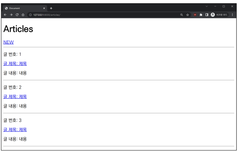 | [Django] ORM 실습 (0) | 2023.03.28 |