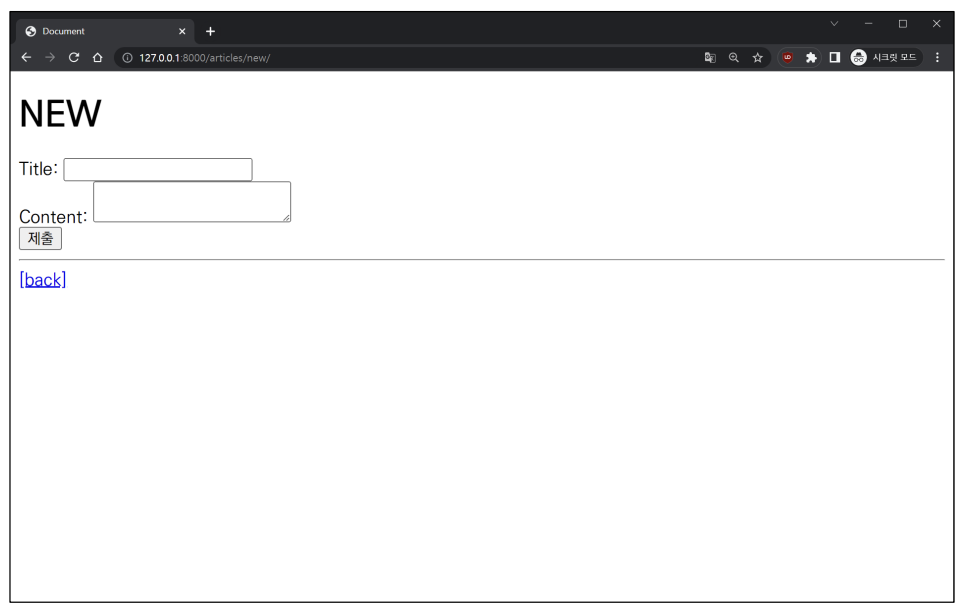 - new : 사용자의 입력을 받는 페이지를 랜더링