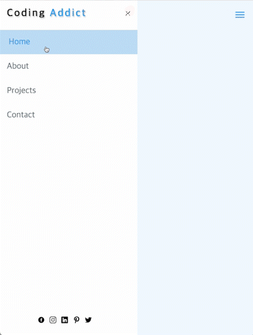 JS에서 toggle하여 menu 아이콘을 클릭할 때마다 사이드 바 메뉴를 열었다 닫았다 할 수 있도록 구현하였다.