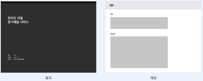 - 최종적으로 유관부서에게 공유하는 문서(디자인팀, 개발팀)