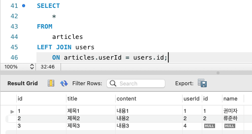 ⎣ SELECT articles.id를 하거나 SELECT users.id 와 같이 테이블을 명시해줘야 함