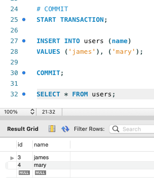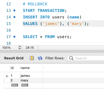 ① Transaction practice ROLLBACK vs COMMIT
