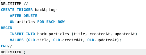 ⎣ 아티클 테이블에서 INSERT이벤트가 끝난 후에 recordLogs 트리거를 생성할 거야: ON articles FOR EACH ROW